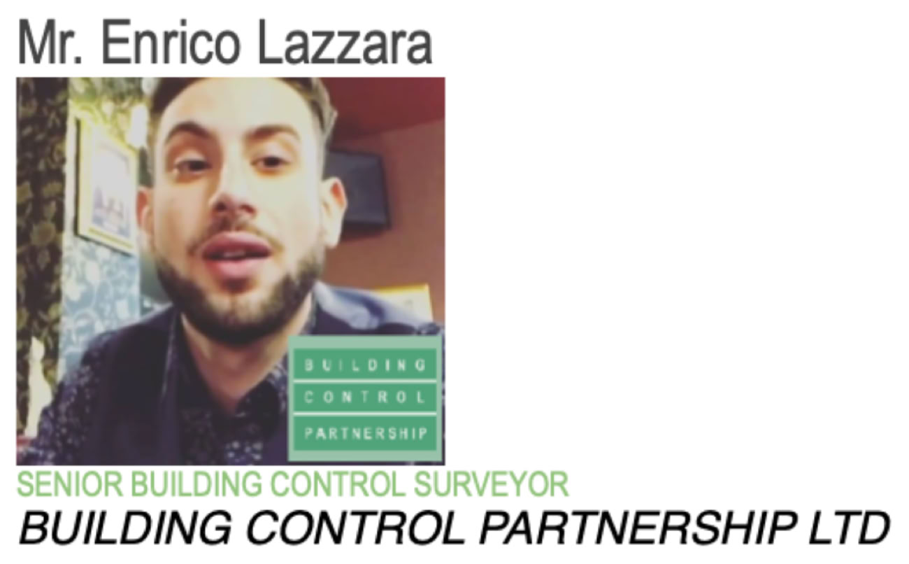 This is a shot from a fraudulent email where Enrico Lazzara is showing, by using our logo and stating in words he has a connection as a Senior Building Control Surveyor to Building Control Partnership Ltd and that he is a qualified person working for a qualified company. He is neither, this is done with the purpose of alleged deception.
